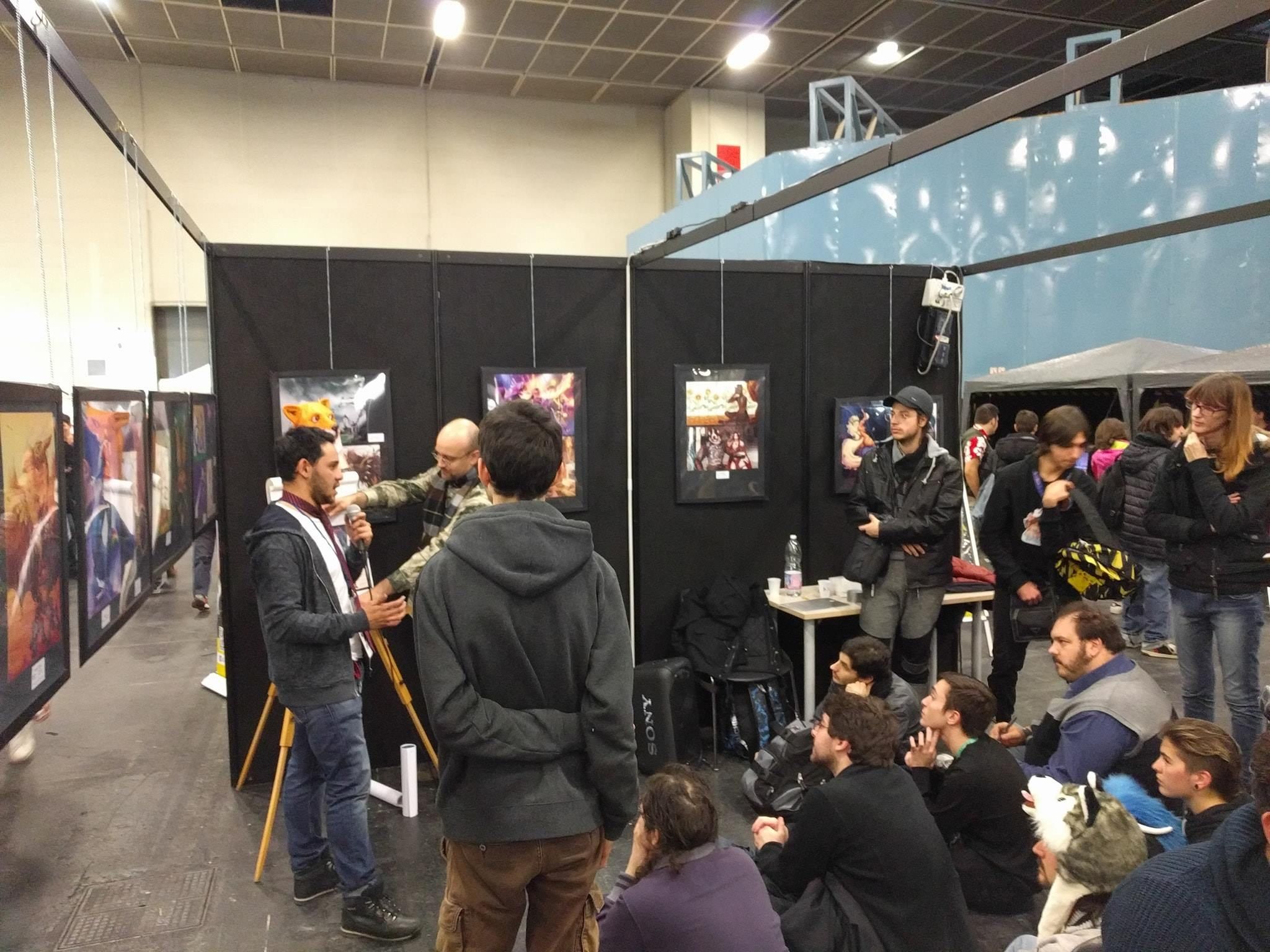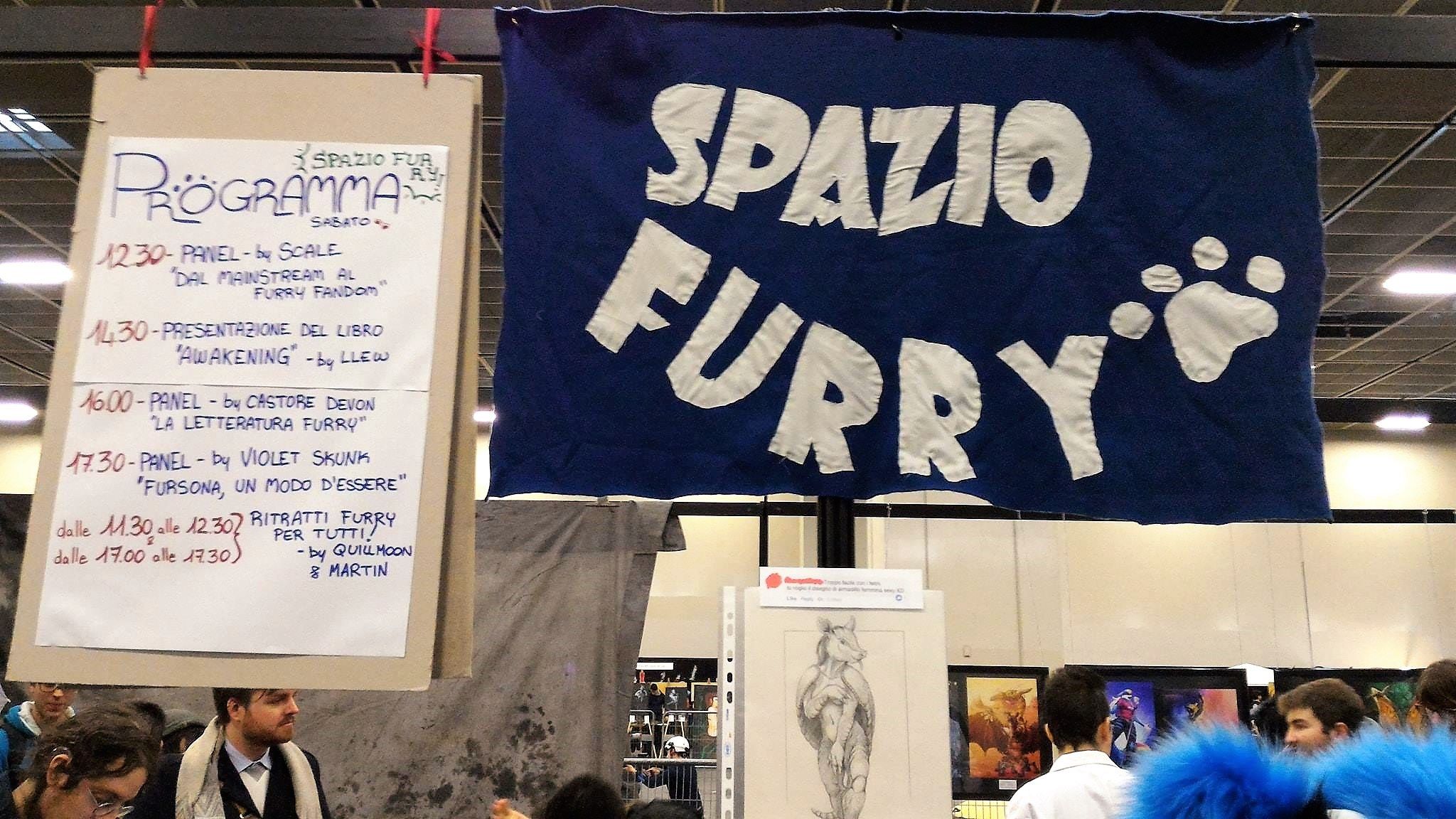 Al nostro arrivo, una gran quantità di furries affollava già lo stand, tutti intenti a scambiarsi saluti e abbracci, mentre lo staff era occupato con i preparativi per le prime attività della giornata.